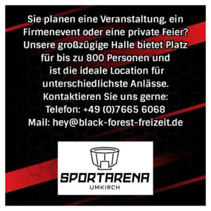 Sie planen eine Veranstaltung, ein Firmenevent oder eine private Feier? Unsere großzügige Halle bietet Platz für bis zu 800 Personen und ist die ideale Location für unterschiedlichste Anlässe.